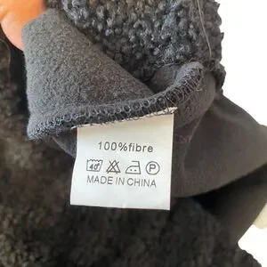 This cozy black sherpa fleece pullover combines comfort and style with its cropped silhouette, quarter-zip detail, and soft, textured material. Ideal for cooler days, it effortlessly pairs with casual outfits, offering warmth and a touch of chic. The elasticized hem ensures a snug fit while maintaining a relaxed vibe.