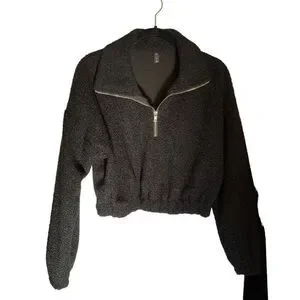 Zaful Womens Small Black Sherpa Fleece Long Sleeve Cropped Quarter-Zip Pullover