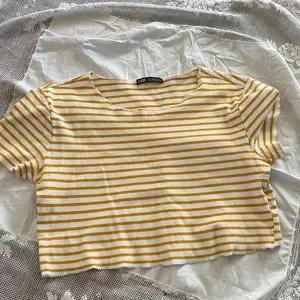 Stretchy Zara crop top. Dark yellow/ gold stripes.