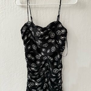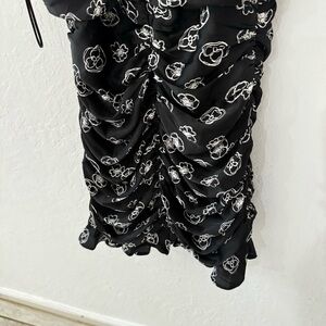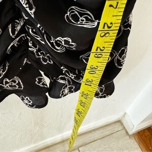 Lush Black White Floral Print Cami Ruched Flutter Mini Dress S