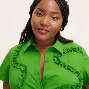 Show up to any occasion in style in the Ribbon Short-Sleeve Midi Shirtdress from kate spade new york x Target. This midi dress in green is constructed from cotton-blend fabric with an allover ribbon pattern. Its front button-down design, side pocket detail, and collar neckline make this dress easy to dress up or down.