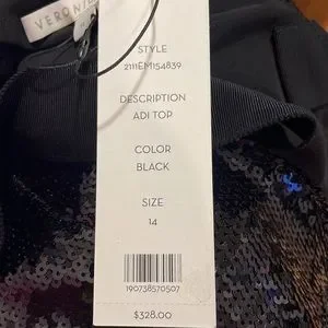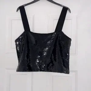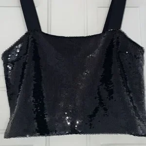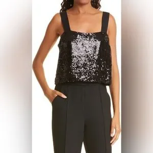 VERONICA BEARD Adi Black Sequin Crop Camisole Top size 14