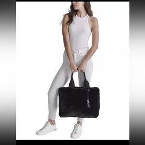 DKNY NWT Beautiful Black Faux Fur Quilted Reversible Roni Tote Bag (P091)