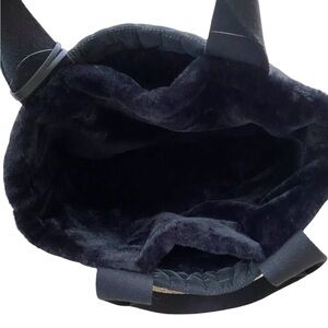 • Elevate your style with the DKNY Black Faux Fur Quilted Reversible Tote Bag.