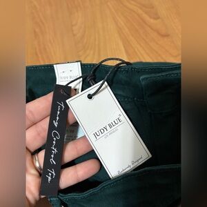 Judy Blue Tummy Control Wide Leg Jeans Size 11 Teal Green High-Waisted Cropped