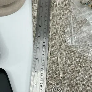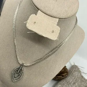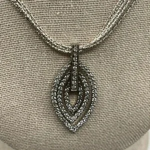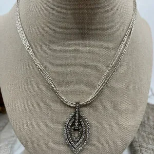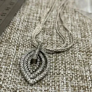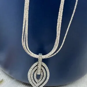 Design: Elegant multi-strand necklace featuring a stunning layered pendant. The pendant has a modern teardrop shape with multiple open, nested ovals, beautifully accented with textured details for added sparkle and dimension.