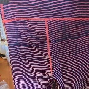 Stylish cropped pants with pink and blue stripes. Comfortable fit. Perfect for workouts.