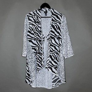 Travelers by Chico's B/W Zebra Print Jacket Sheer Open Front Size 3 or US 16