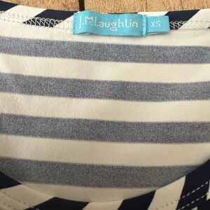 Stylish sleeveless top with blue and white stripes. Features a chic tie front design. Very comfortable and forgiving fabric. Nice for spring and summer and 4th of July! 🇺🇸🎉