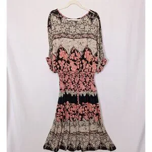 Vintage 90 Y2K Scared Threads XL Midi Dress Patchwork Floral Tie Back Bohemian