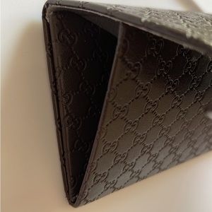 Pre Loved Gucci brown folding genuine leather insignia interlocking GG gorgeous eyeglass Case UC NO STAINS rips or tears sides worn SLIGHTLY AS SHOWN IN PICTURE