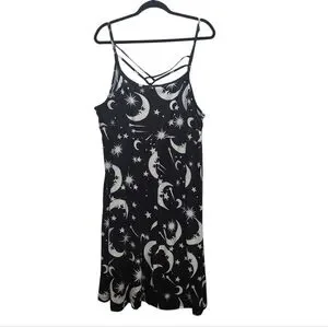 NWT BloomChic Halloween Gothic Black Moon Star Crisscross Neck Dress Plus 18/20