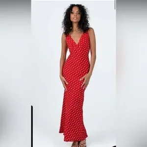 Nellie Red Polka Dot Maxi Dress