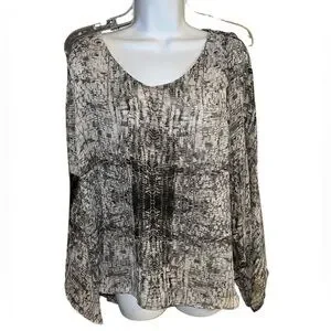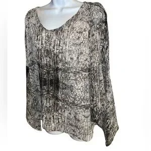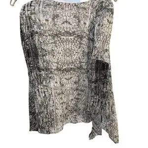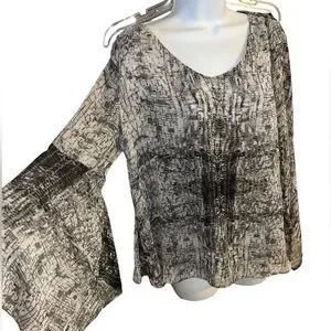 Jennifer Lopez Flutter Sleeve V- Neck Sheer Black & Gray Top Size L