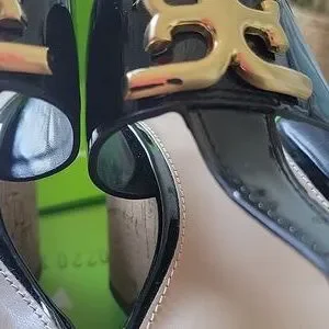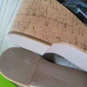 Sam Edelman Yardlie Black Patent and Cork Wedge Thong Sandal Sz 8.5