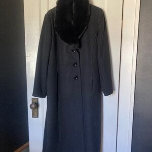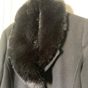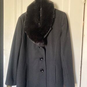Vintage Wool/Cashmere Black Button Down Coat 14 Removable Faux Fur Trim Made in Boston
