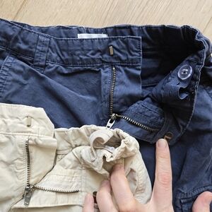 3. Scene & Heard 100% cotton dusty navy blue and khaki pull on cargo shorts with metal clasp closure and zip fly, inner adjustable waistband, belt loops and 6 pocket design, size 6, EUC.
