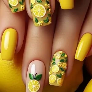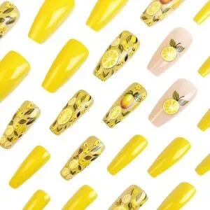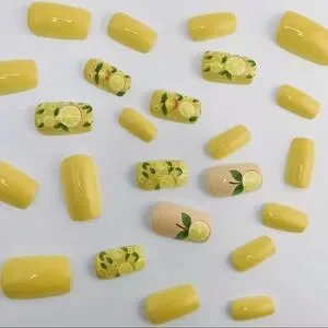 Summer Fresh Lemon Press-On False Nail Styles, Simple, Sweet, Elegant And Luxurious Style, Removable & Reusable
