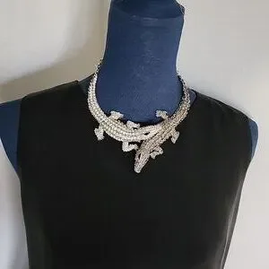 Large Statement Silver with Cubic Zirconia Crystals Double Alligator Necklace