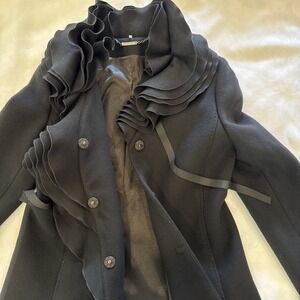 Elie Tahari Woman's Black 100% wool ruffle front Coat Size X-Small