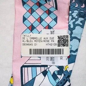 Hermes De l'Ombrelle aux Duels Twilly Scarf in Bleu Moyen / Rose Pale