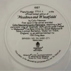 Vintage 1987 Wedgwood Meadows and Wheatfields Limited Edition Collectible Plate