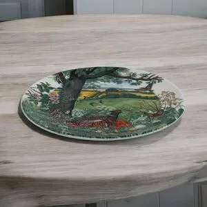 This vintage Wedgwood collector plate is a stunning piece of art pottery that will add a touch of countryside charm to any decor. This plate is a limited edition #6906A, first issue in series of Colin Newman’s Country Panorama, titled ‘Meadows and Wheatfields.’ Featuring a beautiful landscape pattern of England’s idyllic countryside, this round plate has a diameter of 8.5 inches and is made of high-quality bone china. The multicolor design is perfect for all occasions and will complement any color scheme. Excellent condition. Easel not included.