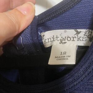 Knit Works girls navy blue/coral/white fit and flare dress