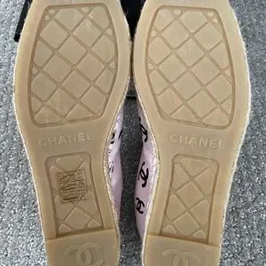 Authentic Chanel crazy CC espadrilles in size 35. I do not ever recall wearing these shoes. Looks in new condition. Only minor issue is the back of the inner heel part is slightly dirty. Not sure how it got there. Please refer to the photo. Comes with box and dustbag. Guaranteed authentic or money back.