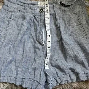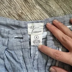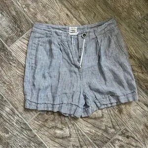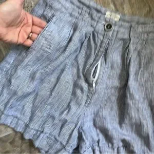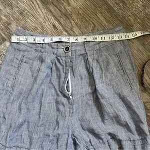 Andrea Jovine 100% Linen, Blue and White Striped High Waisted Shorts, Women’s 4