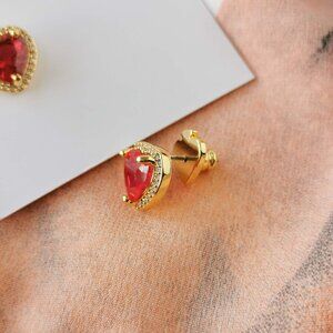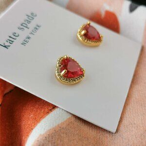 Kate Spade - My Love Pavé Heart - Gold Ruby Red Stud Earrings
