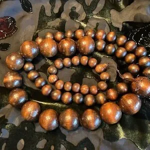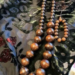 GRADUATED WOODEN BEAD NECKLACE (18” LONG) AND MATCHING BRACELET