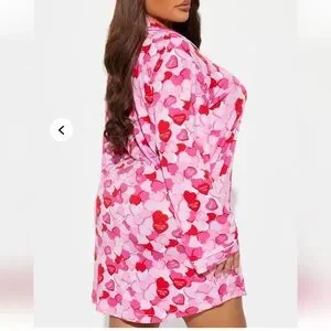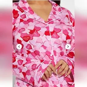 Cozy pink pajama shirt with heart print. Perfect for lounging.