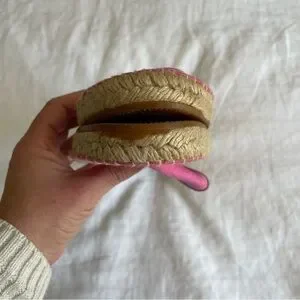Tags: J.Crew espadrilles, pink canvas mules, palm tree print shoes, summer slip-on footwear, tropical vacation shoes, casual warm-weather flats, beach style espadrilles, lightweight summer mules, playful pink shoes, easy slip-on summer shoes, preppy tropical footwear, J.Crew women’s summer shoes