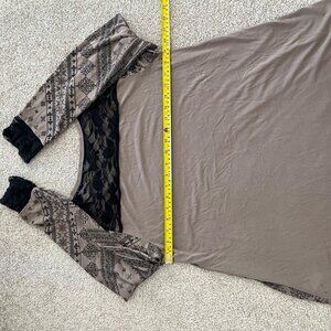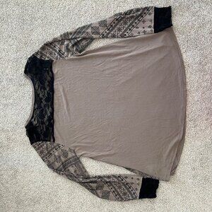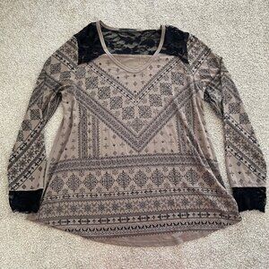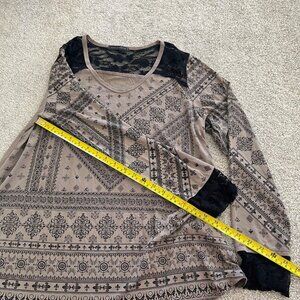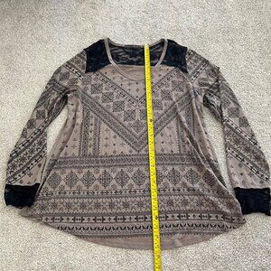 Y2K Whimsygoth Studded Lace Flowy Abstract Black & Brown Long Sleeve Top