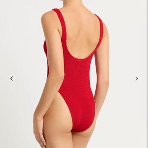 Ron once for a bachelorette. Color is bay watch red. Similar to hunza g suits.