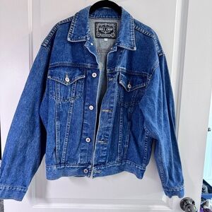 Hill Crop Japan Brand Vintage Trucker Denim Jacket Dark Blue Wash Size Medium