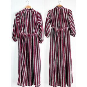 Vintage 70s Magenta Silver Stripe Glitter Sparkle Disco Party Maxi Dress small