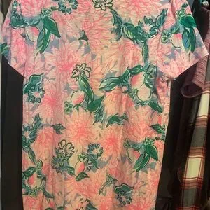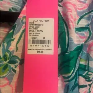 This vibrant t-shirt from Lilly Pulitzer features a lively floral pattern in orange and pink hues, perfect for a summery look. The short sleeves and comfortable fit make it an ideal choice for casual outings or resort wear.