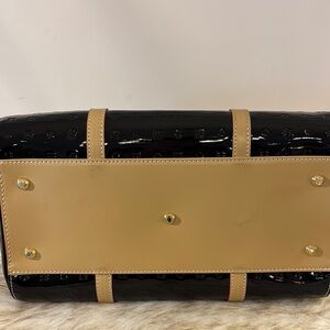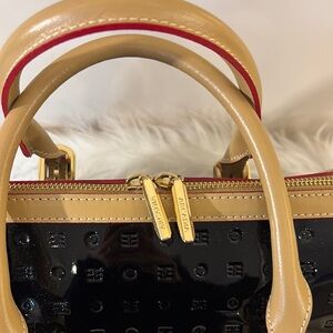 Arcadia Women's Patent Black Leather Satchel Crossbody Bag - Black and Gold