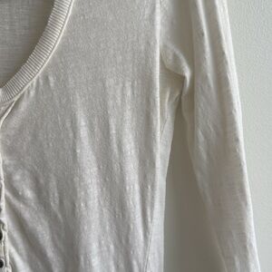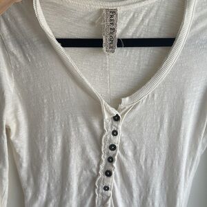Free People white long sleeve top with button details and delicate lace accents. Perfect for a chic and comfortable look. Shirt is old, Some discoloration.