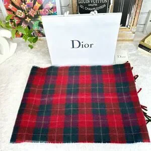 Good condition, used Chrisitian Dior Plaid 100% acrylic Cashmaire soft scarf.