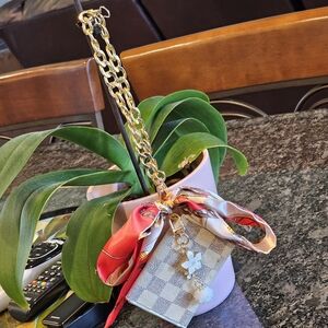 Louis Vuitton Damier Azur Key Case/Holder W/Chain, Twilly & Charm Added