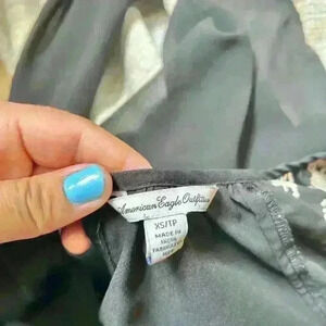 American Eagle Sheer Black Embroidered Peasant 3/4 Sleeve Blouse