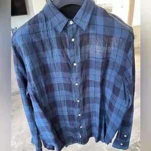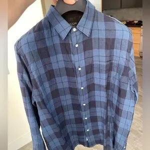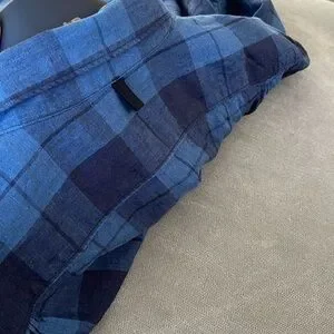 Plaid, teal and blue color, looks much better in person. The square contrast is more subtle.