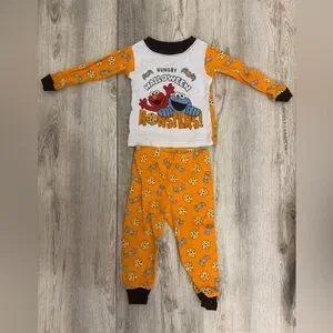 Fun Sesame Street pajama set. Features Elmo and Cookie Monster print. Perfect for Halloween.