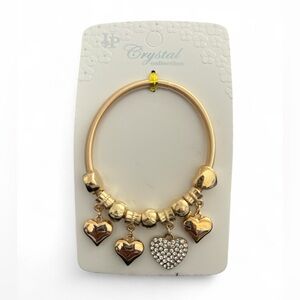 Elevate your style with this Bracelet & Key Holder/Bag charm set featuring a luxurious gold-toned finish. The bracelet stretches to fit any size.