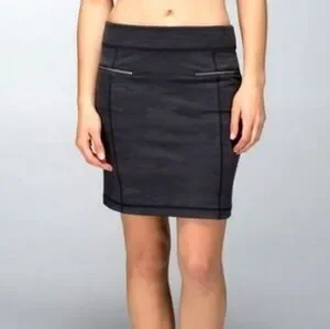 Lululemon Rocket Pencil Skirt Black Retro Grey Camo Zip Pockets Stretch Size 4