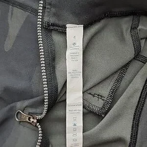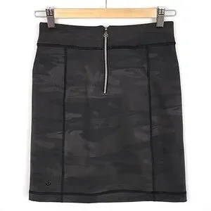 Excellent pre-owned condition, like new, Lululemon Athletica Women's Rocket skirt in black / retro camo stretch comfy material with two front zippered pockets and back zipper with button closure, size 4.