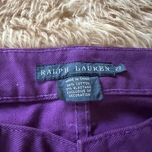 Stylish purple flared jeans by Ralph Lauren. Perfect for a bold look. Pink polo logo on back pocket. Size 27. Worn a few times but still in very good condition.